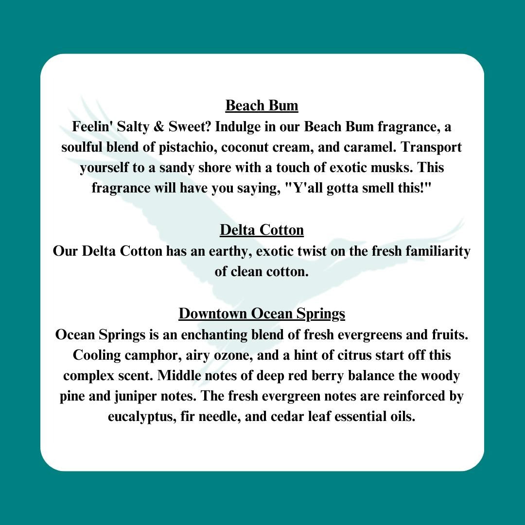 Our 17oz All Purpose Cleaner Bundle includes our most popular fragrances; Beach Bum, Mississippi Whiskey, Saltwater Sol and South Mississippi!