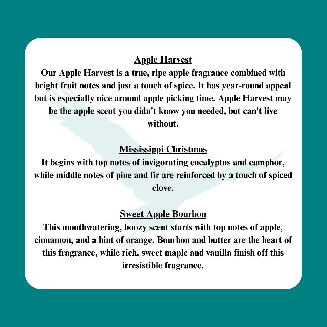 Fragrance Oil: High quality fragrance oil that are pet safe and free of reproductive and cancer causing toxins. Each fragrance has a different ingredients to produce the different fragrance notes. Oils are derived from essential oils. Oils can contain nut oil.